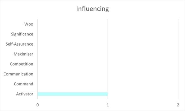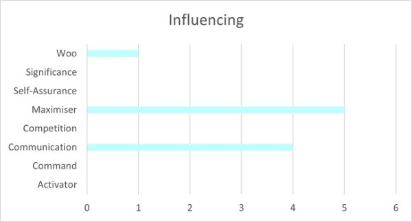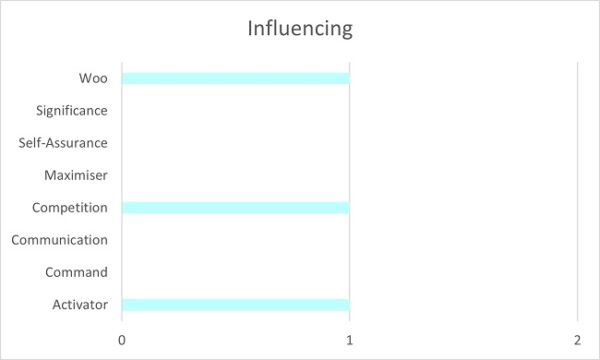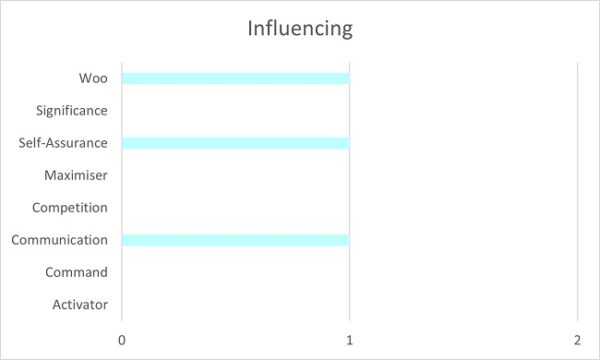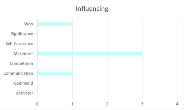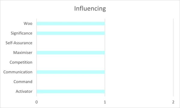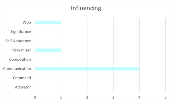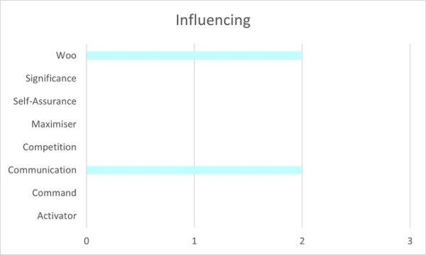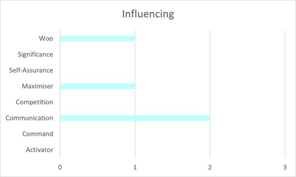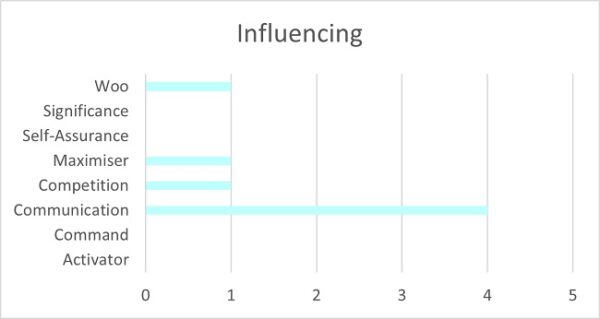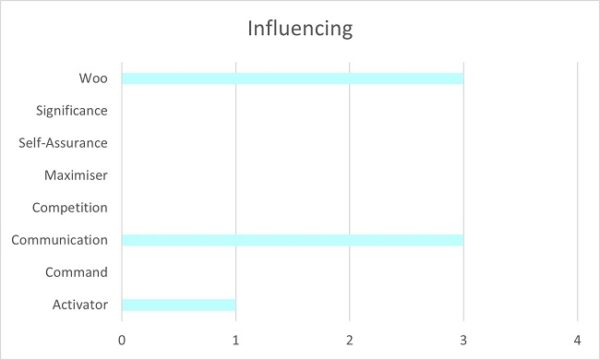 • Influence likely to be coming from the relationship building strengths, building trust, listening and caring.